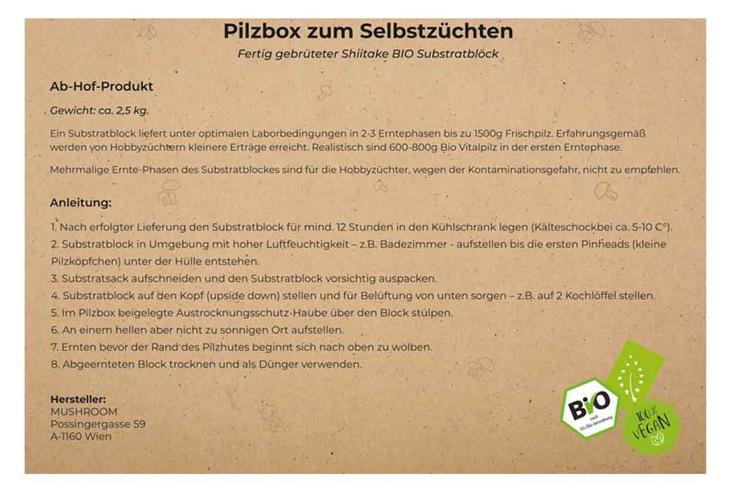 ANMERKUNG: Die Grow Kits sind, je nach Vitalpilz-Art, innerhalb von 1-4 Wochen versandbereit.
